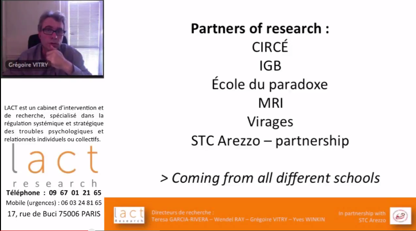 L’objectif général du programme de recherche est de communiquer et contribuer à améliorer l’efficacité et l’efficience du modèle d’intervention de problem-solving / Palo Alto. Le programme a commencé en mars 2015, qui regroupe 50 partenaires de recherche. Toutes les sensibilités issues du modèle de Palo Alto se réunissent dans ce programme avec les partenaires qui viennent de CIRCÉ, MIR, École du paradoxe, Virage, IGB, STC Arezzo. Cette diversité va faire une partie de la richesse qui rend les membres moins isolés dans leur école d’origine respective.